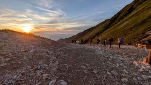 ついに最終日を迎えました。日の出とともに下山開始です。美しい朝焼けを前に、パーティの士気が上がります。