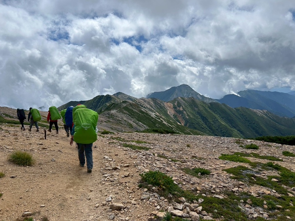 始まりの朝、鳥たちのさえずり、川のせせらぎの音で目を覚ます。ことはなく、普通にleaderさんの「起床!!」の声で目を覚まします。この軍隊じみた朝活も2回生になると慣れたものです。ちゃちゃっとパッキング、テントの撤収を済ませ、松本駅のスーパーで購入したパンを頬張り、いざ出陣!
