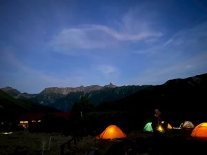 この日からご飯は自分たちで作ります。この日の夜ご飯はシチューをいただきました。次の日は当初の工程の中では一番きつい山行になることが予想されたので、早めに寝て体力全回復を図ります。