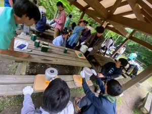 70期が食当で火を扱うのも今回が初めてでした。「火つけまーす」や片膝立ちなど先輩方が確立したワンゲルのきまりはこうして受け継がれていくのですねー。