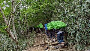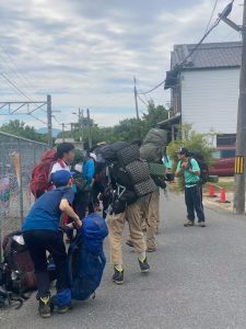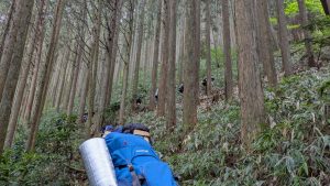 水越峠にたどり着いたらすぐに始まる地獄の登り、、、。去年も経験していたので心の準備はしていたのですが、去年よりも歩荷が格段に重いこともあってか、めちゃくちゃきつかったです。うん。めちゃくちゃ。1日目は元気だったさすがの70期も葛城山の登りにはだいぶ応えているようでした。しっかりきつそうな70期を見て同じ人間なんだと謎に安心したのはここだけの話、、、