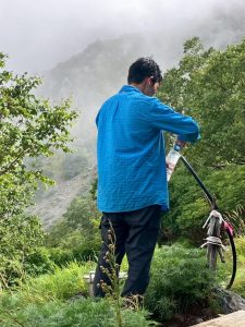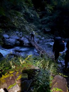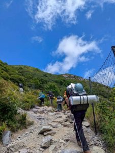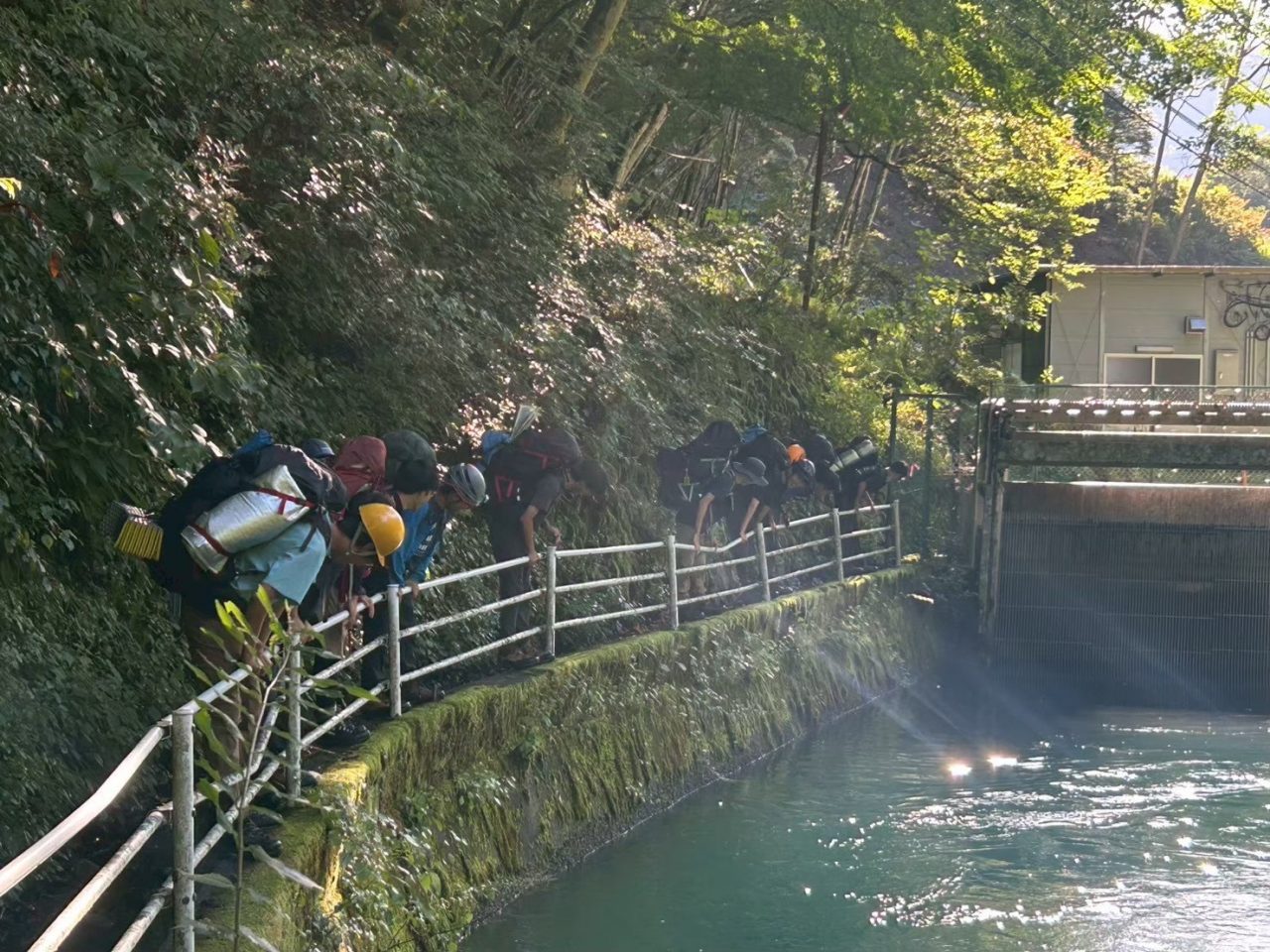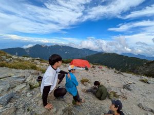 テント場に着くとすぐに水に飢えたメンバーで水を汲みに行きます。(最終的に連絡担当のリーダー以外全員)