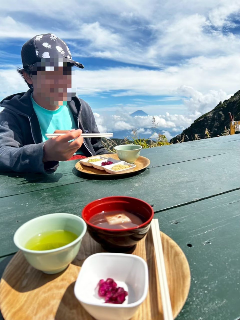 夕食を作る時間まで暇になってしまったので小屋で売っていた餅を食べることにしました。3次予備までは小屋で買い食いしてはいけないよくわからない掟みたいなruleがあるので今年度初の山小屋の飯。きな粉かお汁粉か、うーんうーん悩ましいですねぇ。