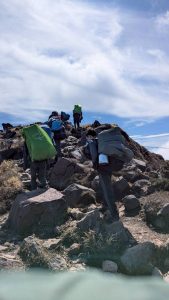 頂上は先ほどより広く、全パーティが集合しても余裕がありました。これから後の行程は下りしかないということもあり、みんなの表情が活気づきました。