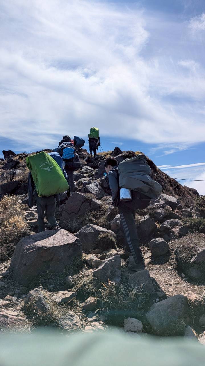 今回の合宿は初日は悪天候、二日目は長距離行程、三日目は連結パーティと、それぞれ課題が特徴的で良い経験になったと思います。まずはやりきることができてよかったです。一方で、新入生が入ってきた想定ではまだまだ訓練が必要な点もあり、新歓合宿ではそういった点を直し、先輩として後輩を連れていけるように頑張りたいと思います。